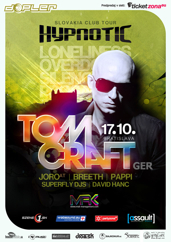 A kto bude ten, ktorý nás prevedie premiérou tohto eventu v plnej paráde? Tomcraft! Tomcraft! Tomcraaaaaaaft! DJ Tomcraft, človek, ktorý je zodpovedný za niekoľko stoviek vydarených parties po celom svete. Pán DJ, ktorý je každoročne súčasťou top one podujatí ako Mayday, Love Parade či Nature One. Práve tento človek nás príde zabaviť. A určite sa mu to podarí, pretože jeho skladby ako "SILENCE", "PROSAC", "OVERDOSE" a predovšetkým "LONELINESS", hovoria samy za seba. Nájde sa snáď niekto, kto ich nepozná?!
